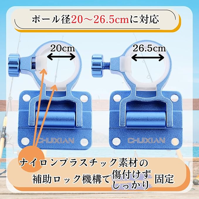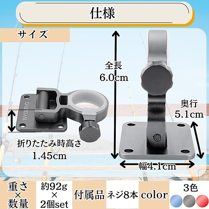 ブルー、グレー、レッドの3色から選べる2個セットで、複数の釣り竿を効率的に設置できます。
