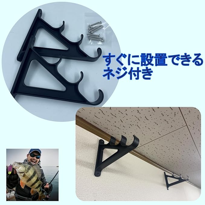 高さ34㎝の壁スペースがあれば2セット装着できますのでリール付きで6本の収納が可能。