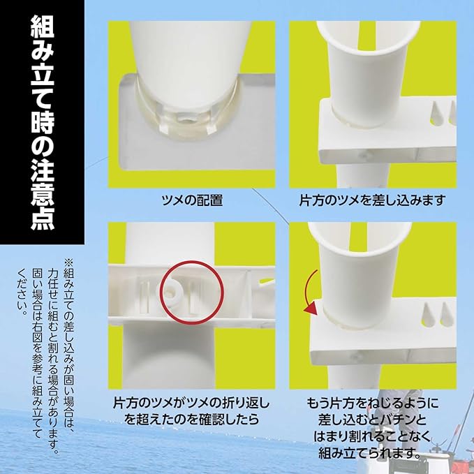 ✅【組み立て時の注意点】縦ホルダーとホルダー固定バーの組み立て時、接合部分のツメを力ずくで差し込むと割れる場合があります。固いと感じた場合は下記+画像を参考に組み立ててください。