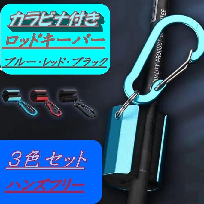 ロッドキーパー 3色 セット ロッドクリップ ロッドホルダー 落下防止 カラビナ付