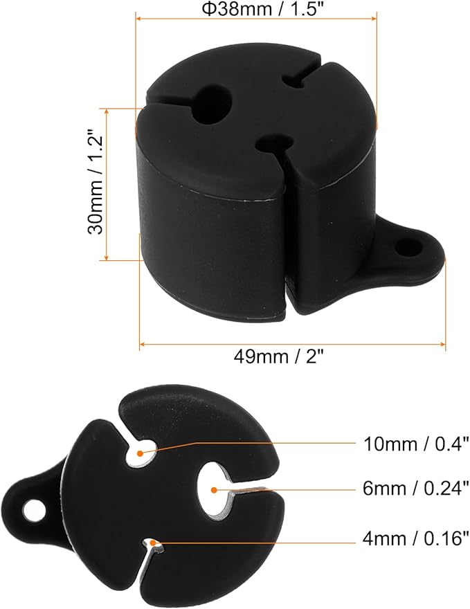 素材:シリコン;全体サイズ:49 x 30 x 38 mm/ 2 x 1.2 x 1.5 "(長さ 高さ 直径);溝のサイズ:4mm/ 0.16"、6mm/ 0.24"、10mm/ 0.4";パッキングリスト:フライフィッシングロッドホルダー2個、ランヤードバックル1個