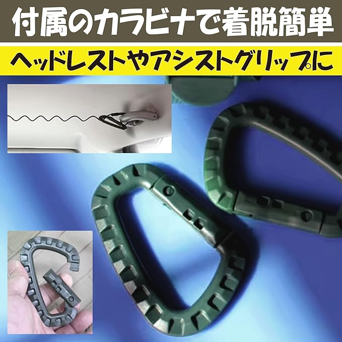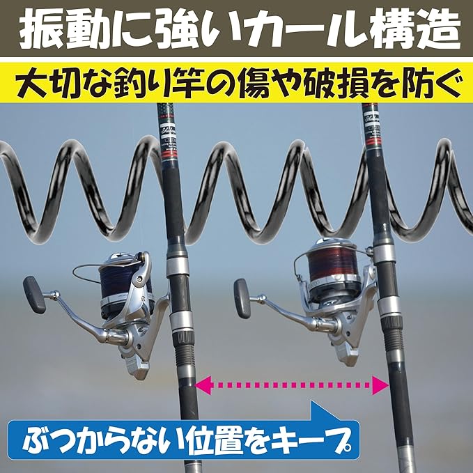 簡単に設置できる:こちらの車載ロッドホルダーは、付属のカラビナを使って車のヘッドレストやアシストグリップに取り付けるタイプですので、誰でも簡単に設置できます。カール構造のロッドホルダーですので、移動中の振動で釣り竿同士がぶつかって傷が付いてしまうこともありません。