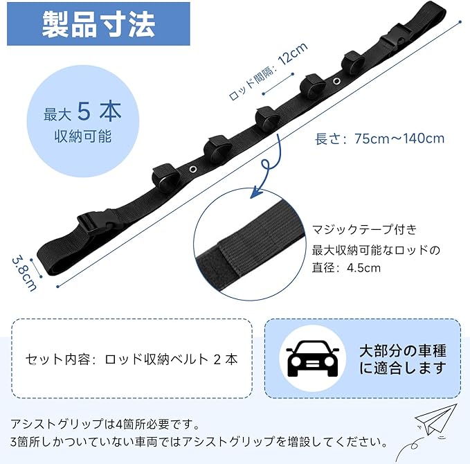 車載用ロッドキャリー ホルダー 7本 収納 キーパーベルト・マジック式車内固定マルチ 2本セット ワンタッチで取り付け 釣り竿用結びバンド 釣り竿収納 釣り道具 マジック式車内固定 マルチ | KAZESHOP