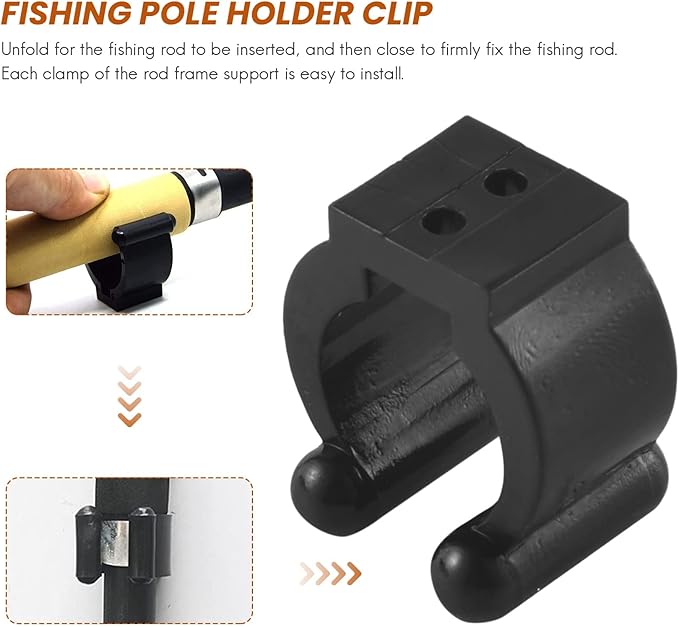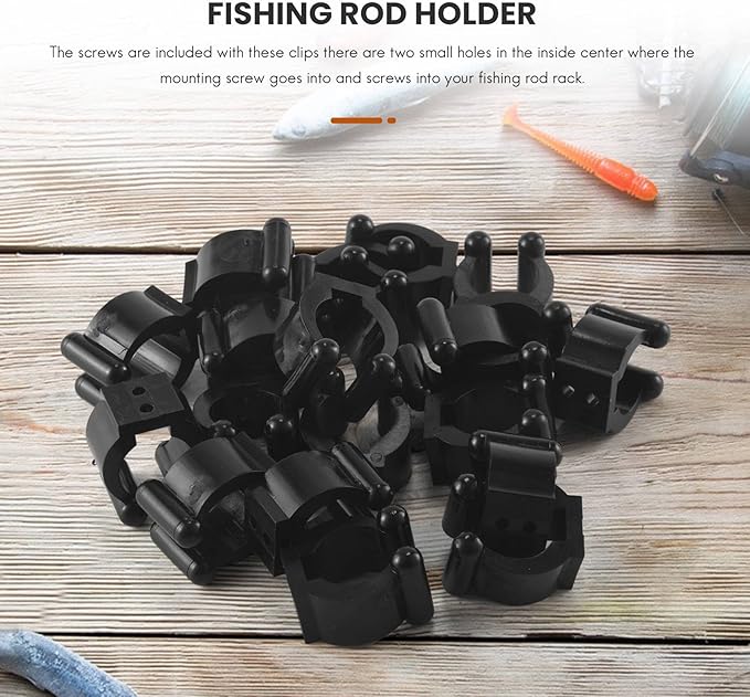 これらのクリップにはネジが付属しています。内側の中央には、取り付けネジが入り、釣り竿ラックにネジが入る2つの小さな穴があります。