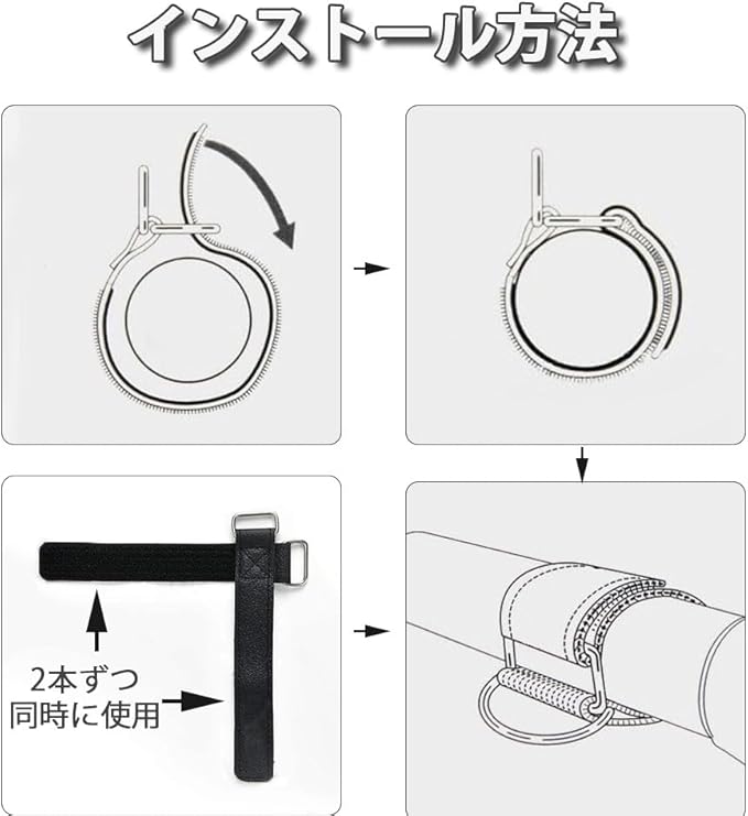 【使用方法】一端が車内補助ハンドルのレバーに固定され、他端が他の物品を固定または懸架することができ、使用方法が簡単で汎用性が高い。
