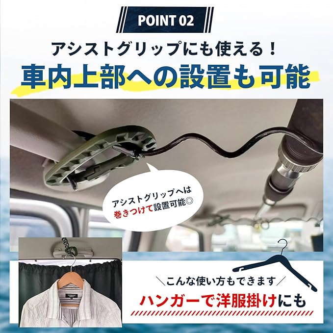 【簡単取付・収納できる2個セット】軽量コンパクト設計の為普段の運転時はアームレストなどに収納、天井に掛ける時等は2個必要なため2個セットをご用意いたしました。釣りに行くときにサッと取り出し取付できるので車を日常とフィッシングで使い分けが可能になります