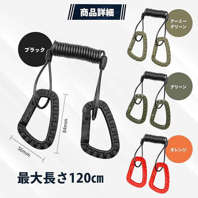 【商品詳細】車載用ロッドホルダー セット内容:カールコード、カラビナ2個 バリエーション:ブラック、アーミーグリーン、グリーン、オレンジ、レッド 素材:カラビナはプラスチック(車内に引っ掛ける際に傷つけないようにプラスチックを使用してます)