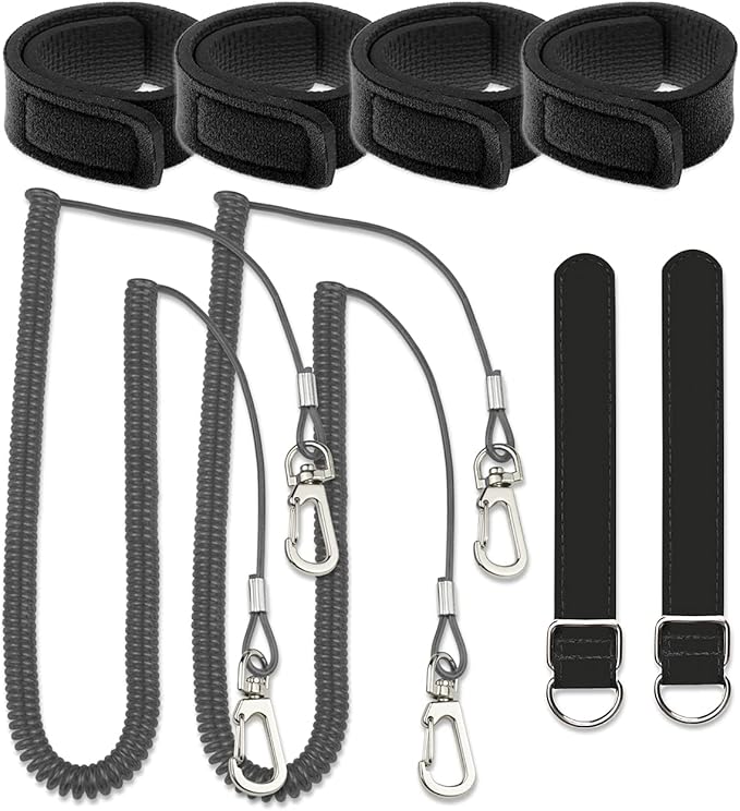 竿をまとめるロッドベルトと竿の尻手部分に取り付ける落下防止用ベルトとロープのセットです。