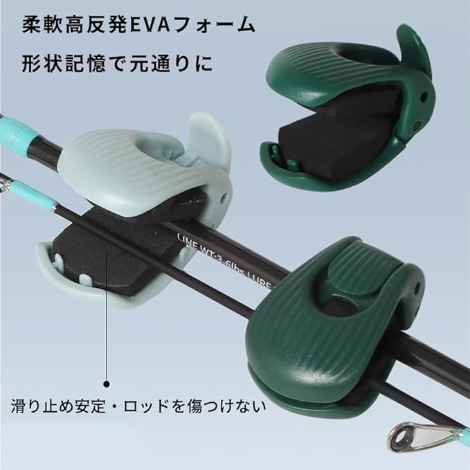 【優れた保護性能】高弾性EVA素材を採用し、釣り竿同士の接触によるキズや摩擦を効果的に防止します。しっかりとした固定力で釣り竿の落下を防ぎ、高価な釣り道具を安全に保護します。