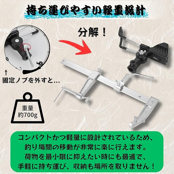 【持ち運びやすい軽量設計の竿スタンド】コンパクトかつ軽量に設計されているため、釣り場間の移動が非常に楽に行えます。荷物を最小限に抑えたい時にも最適で、手軽に持ち運び、収納も場所を取りません。