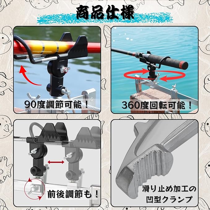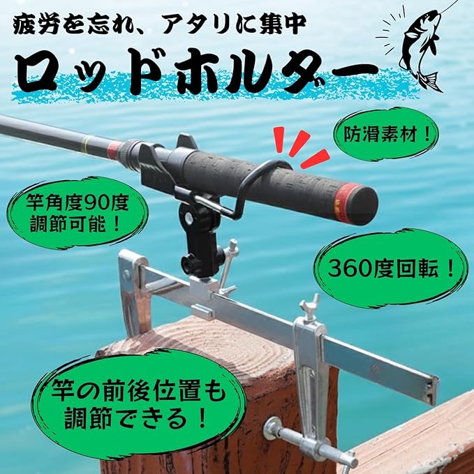 【多様な釣り場に対応する竿置き機能】堤防のフェンス、手すり、または船べりなど、様々な場所へ簡単にしっかりと取り付け可能です。滑り止め加工が施されているため、ぐらつきを抑えて安定した釣りを実現します。