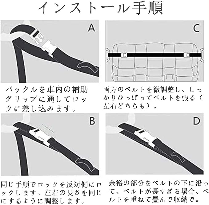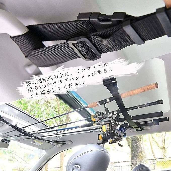 【 簡単に取付ける】車内の両サイドにあるつり革に通すだけで簡単に装着できるロッドホルダーです。取付部分はバックルになってますので取付・取り外しも簡単です。