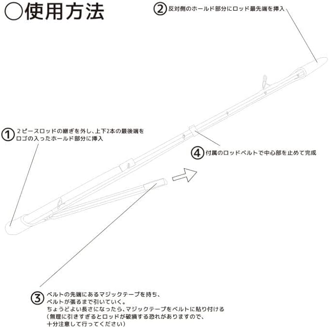2ピースロッドの上下を、包むようなかたちでホールドする特徴的な形状が 魅力のロッドホルダー。5ft5inから9ft6inまで、幅広いセンターカット2ピースロッドに対応。※本製品の全長は138cmですが、伸縮性がありますので9フィート6インチ(仕舞寸法約147cm)のロッドまで収納できます。MAX約138cm
