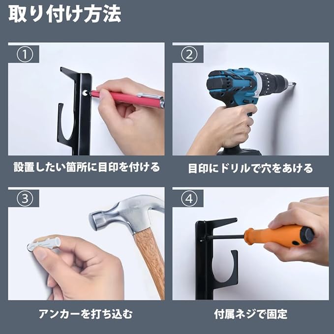 【セット内容】 1セット:本体 2 S字フック 4本 ネジ 6本 アンカー 6本 2セット:本体 4 S字フック 8本 ネジ 12本 アンカー 12本