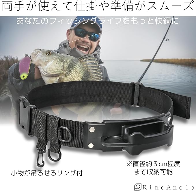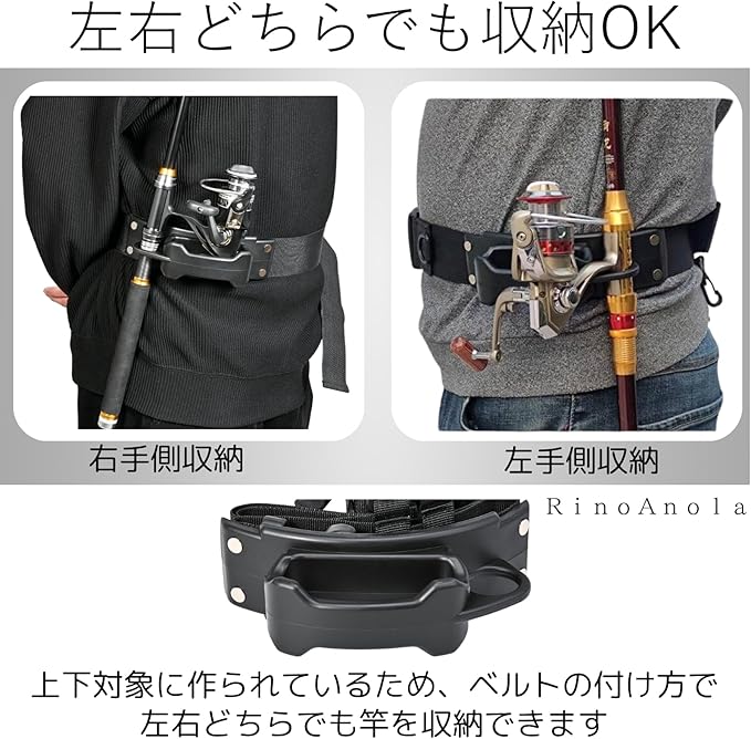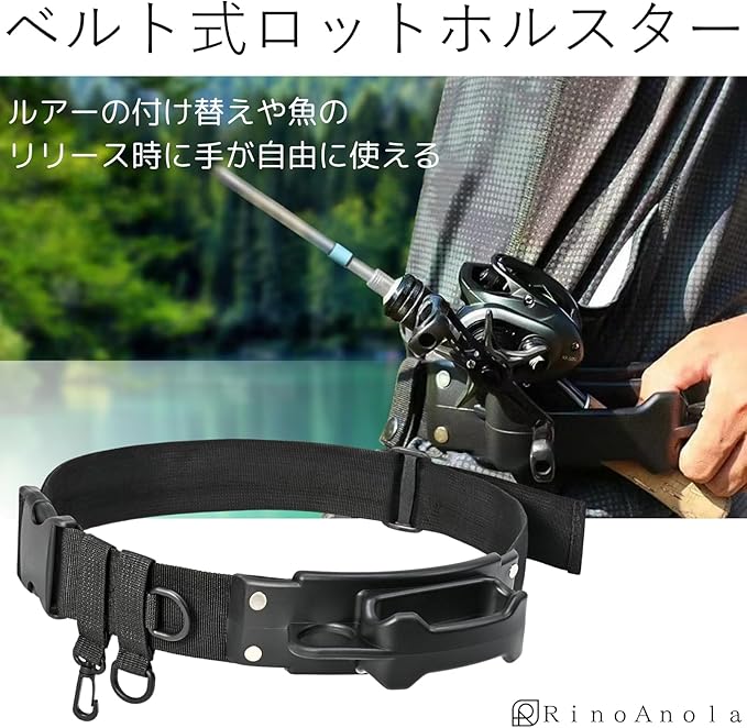 【✅左右どちらでも使用可能】ホルダー部分は上下同じ形となっているため、ベルトの位置や上下入れ替えれば、左右どちらサイドでも釣竿を固定頂けます。またDリングとカラビナつきなので、小物などを吊り下げたりできるので、便利な多機能ベルトとなっております。