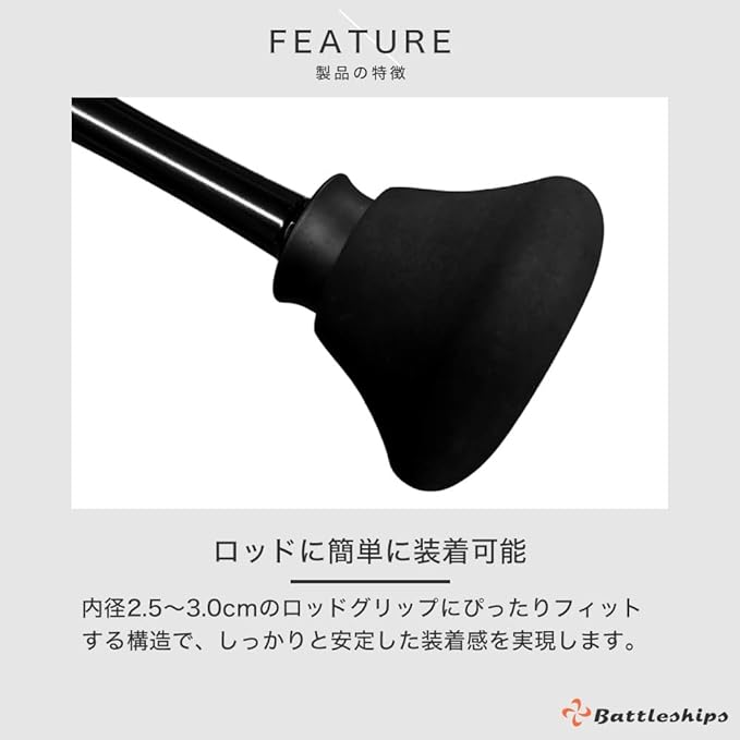 【ロッドに簡単に装着可能】内径2.5~3.0cmのロッドグリップにぴったりフィットする構造で、しっかりと安定した装着感を実現します。