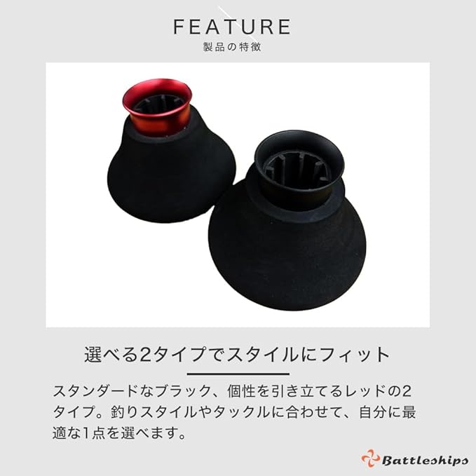 バトルシップスオリジナルの強化アルミスペーサー内蔵デカアテが誕生しました。スタンディングファイトをより快適に、よりタフに。バトルシップスが開発した新型デカアテは、従来のEVAベースに高強度アルミスペーサーを組み合わせることで、耐久性と安定感を大幅に強化。激しいファイトでもしっかりとしたホールド感をキープし、アングラーの負担を軽減します。内部にはゴム製ストッパーを装備しており、直径2.5~3.0cmのグリップにしっかりフィット。滑りにくく、確実に固定できる安心設計です。ベース部分は広めの丸型形状で、体へのフィット感と安定性を両立。さらに、バトルシップスのオリジナルロゴを配置し、細部までこだわり抜いたデザインに仕上げました。