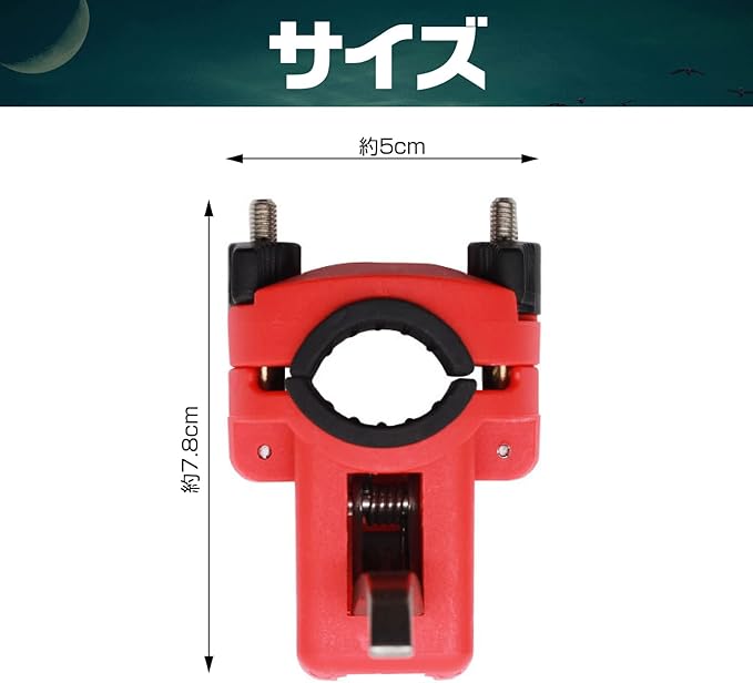 【商品仕様】ピトンクランプ サイズ:長さ7.8 幅5cm、釣りざお直径2~3.5cm、ピトン枠径8mm 素材:ABS、ステンレス カラー:レッド ※モニターの環境により、色の見え方に若干差が生じる場合がございます。