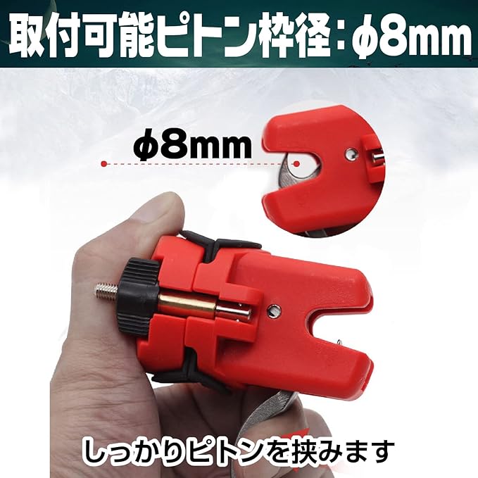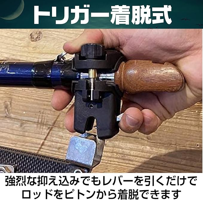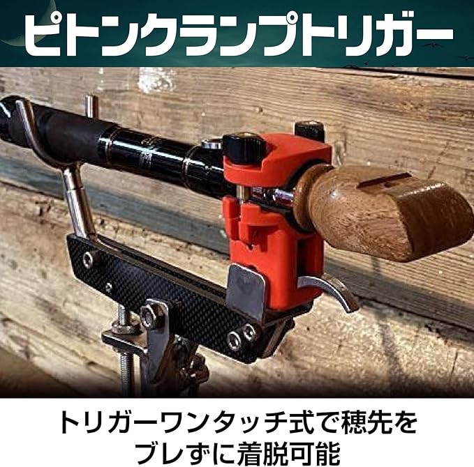 【特色】ピトン枠径8mmに対応、ピトンクランプの上部のねじの開閉でロッドを固定、抑え込みがきつくてもトリガーを引けば簡単に取り外しできます。イシダイ、クエ釣りの必須アイテムです。
