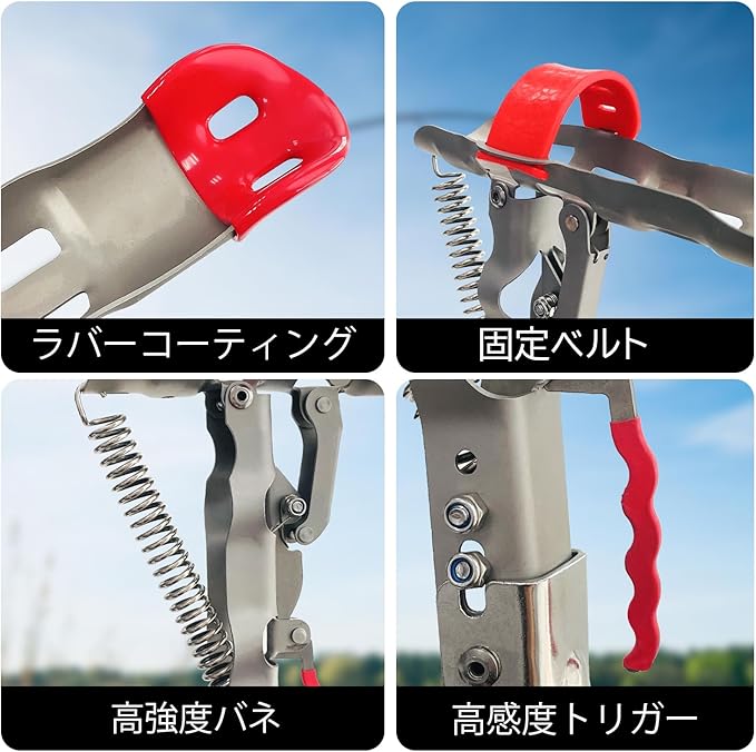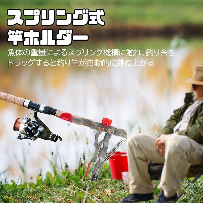 【スプリング式・自動持ち上げ】スプリング機構を備えているロッドホルダー、魚が餌を食べる瞬間、魚体の重量によるスプリング機構に触れ、釣り糸をドラッグすると釣り竿が自動的に跳ね上がるのは特徴。手軽に竿を置けて手を解放させるので釣りを楽しめます。海釣り、磯釣りなどで釣り竿を固定すること、安定性は良い。釣りの初心者に必要な道具としてオススメ。