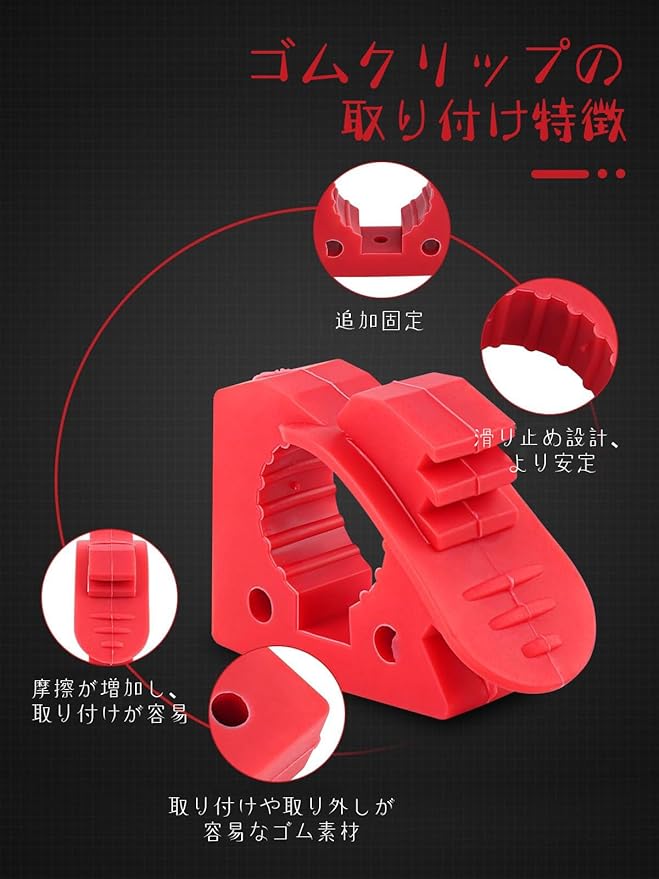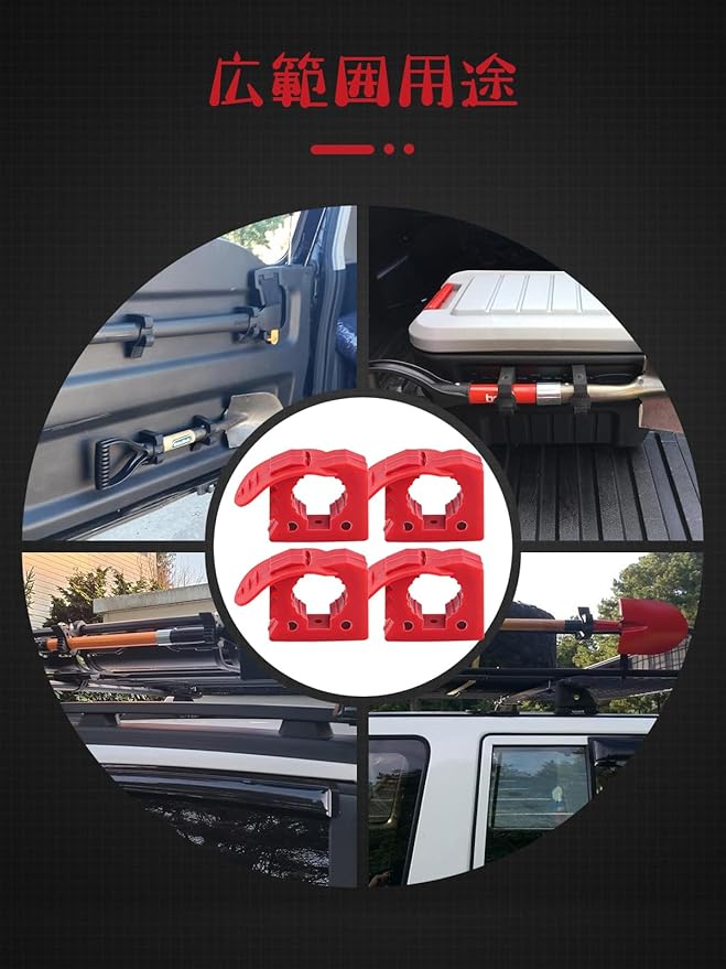 スコップホルダー 直径29mm~35MM対応 4個セット クイッククランプ ラバー製 壁面取付クランプ ショベルホルダー 懐中電灯 釣り竿 スコップ ツール固定用クランプ 車 トラック トラクター トレーラ 汎用 (レッド, 4個セット) | KAZESHOP