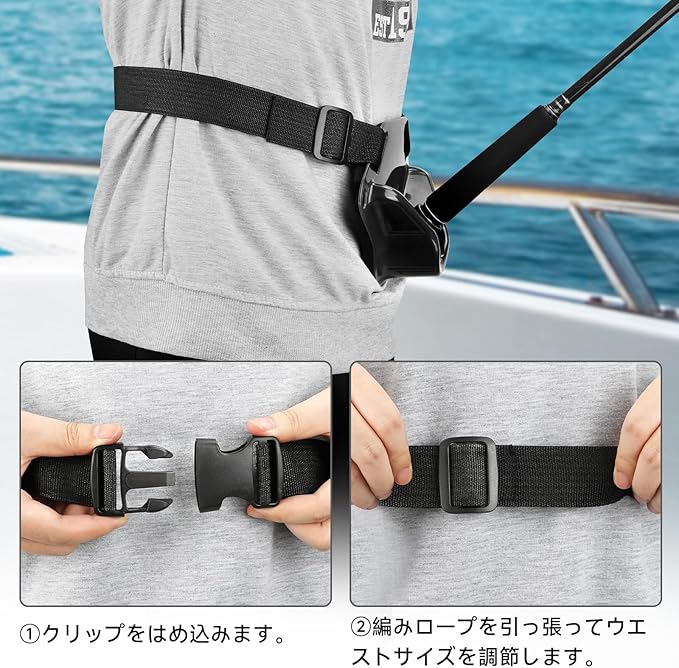 【釣りの負担軽減】釣り竿・釣竿を引く時の腰や体、ウエストの負担を軽減してくれるロッドホルダー、ロッドサポートベルトです。