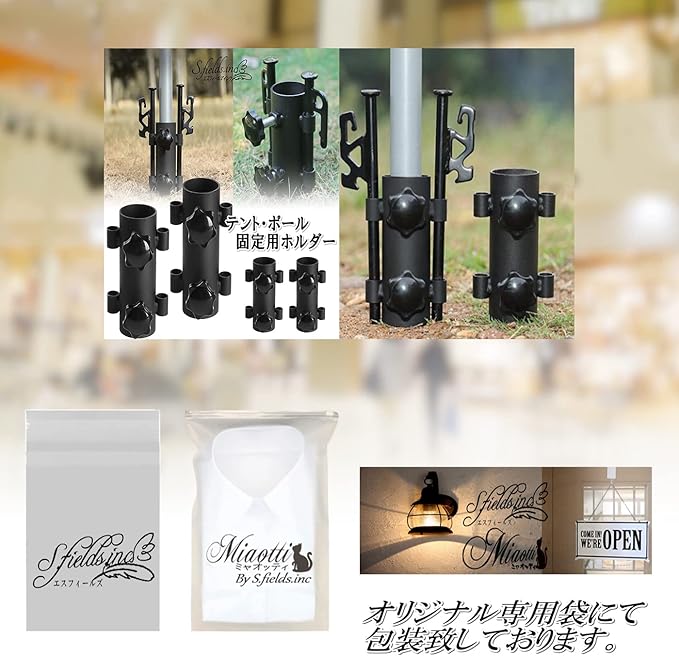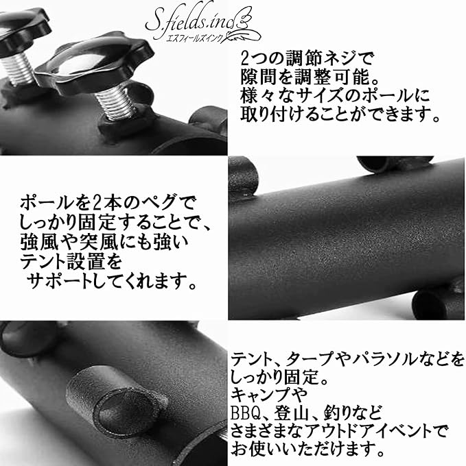 本体にある2つの調節ネジで隙間を調整可能。様々なサイズのポールに取り付けることができます。