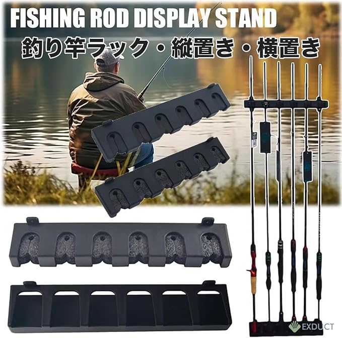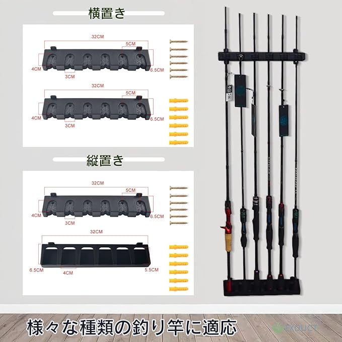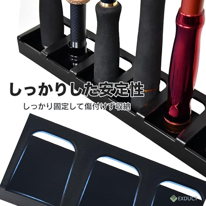 釣り竿をしっかり固定できるので散らばりにくくスペースを最大限に節約できます。固定部分は繰り返し固定できる素材なので簡単に取り付け、取り外しができます。