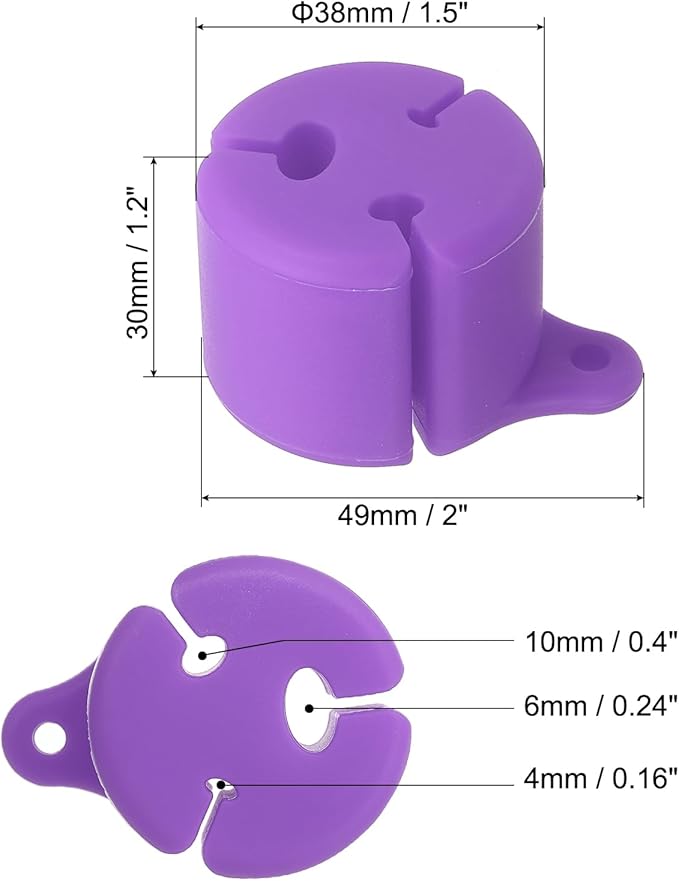 素材:シリコン;全体サイズ:49 x 30 x 38 mm/ 2 x 1.2 x 1.5 "(長さ 高さ 直径);溝のサイズ:4mm/ 0.16"、6mm/ 0.24"、10mm/ 0.4";パッキングリスト:フライフィッシングロッドホルダー3個とランヤードバックル1個