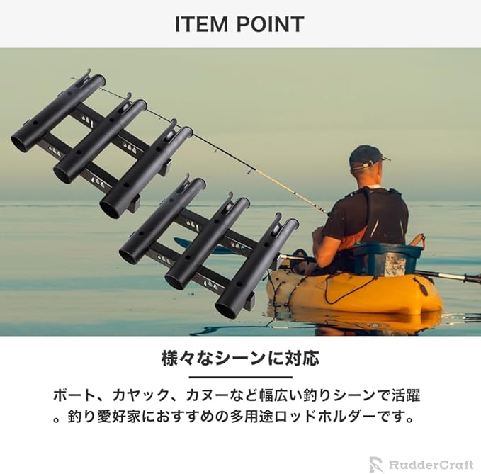 【様々なシーンに対応】ボート、カヤック、カヌーなど幅広い釣りシーンで活躍。釣り愛好家におすすめの多用途ロッドホルダーです。