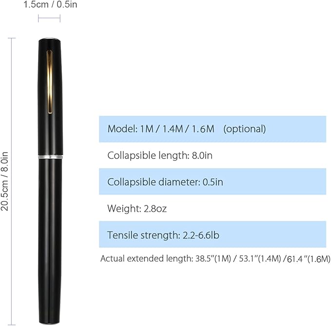 【軽量でポータブル】折り畳んだ長さはわずか20cm(折り畳んだサイズ:20.5*1.5cm)なので、ポケットや釣り具に入れることができ、釣り用リールにも使用できます。 竿と竿の組み合わせで、すぐに釣りの楽しさが楽しめます。