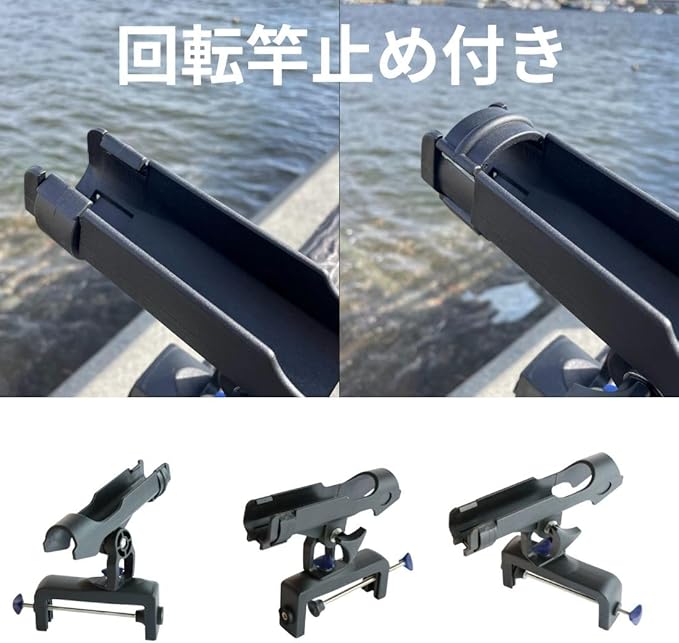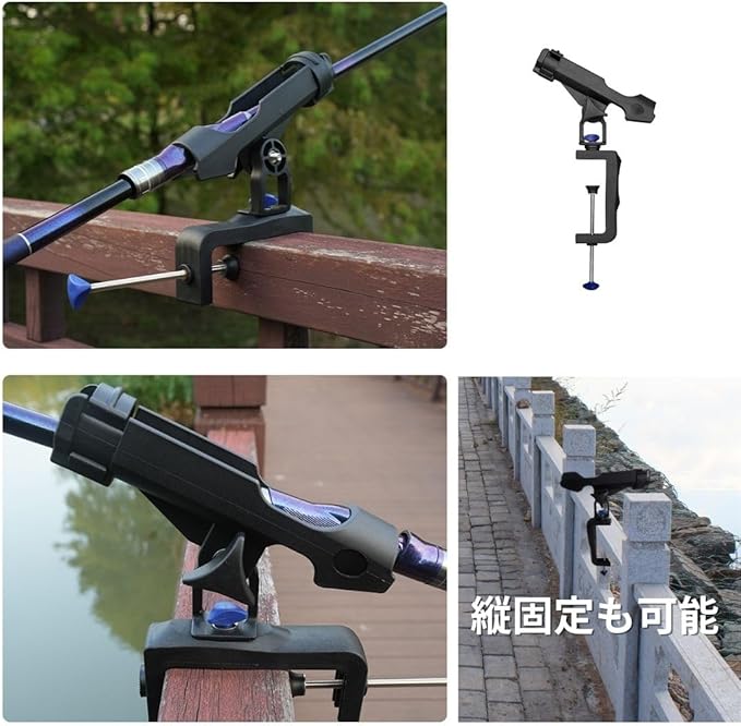【回転自由】360度角度調整可能で、クランプ開口部が大きいので、様々な釣場に適し、縦付け、横付けが切り替え可能なので、お好きな位置に、角度が自由自在に調整できます。釣り中でもロッドの角度調整は便利です。釣り竿の柔軟な角度調整、回転可能なヘッドとなっています。ロッドを傷つけないコート、取り扱いもしやすいスタンドです。