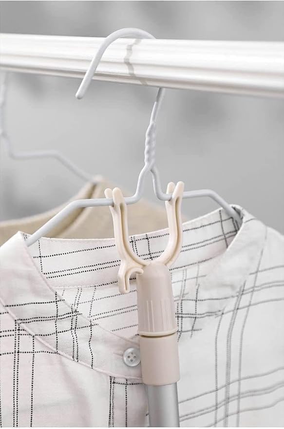 3.【回転すると固定でき】特別にデザインされたハンガーポールであり、ロッド/クローゼット/ラックに簡単に掛けられます。自由に伸ばすことができるので、洗濯も楽にできます。