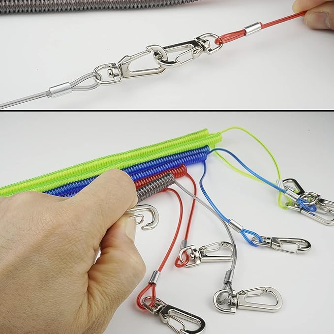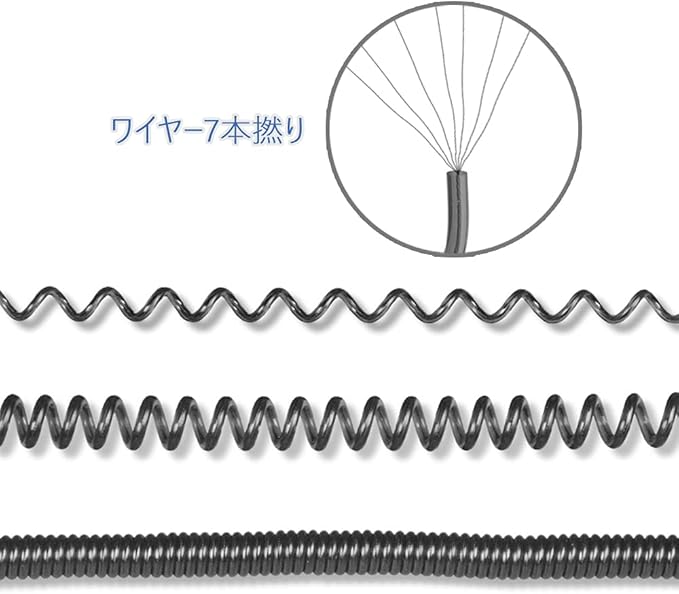 スパイラルコード:ステンレスワイヤー入りで安心強度、ナスカン付きで取り付け簡単