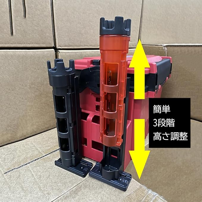 【機能性】汎用性のあるロッドスタンド2本セット。各種の釣竿やタックルボックスに対応している釣り竿のスタンド。2個セットで釣り道具として便利に使えます。ロッドフォルダーの高さは3段階に調整可能な釣りざおケースです。
