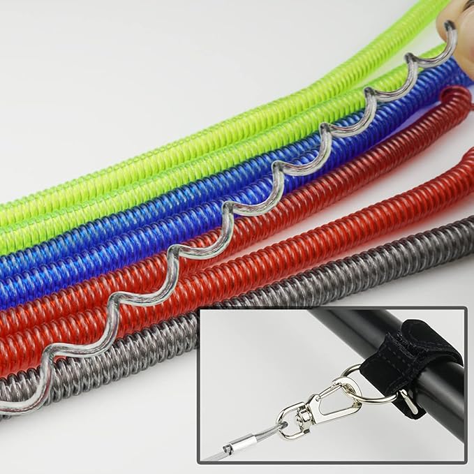 スパイラルコード:ステンレスワイヤー入りで安心強度、ナスカン付きで取り付け簡単