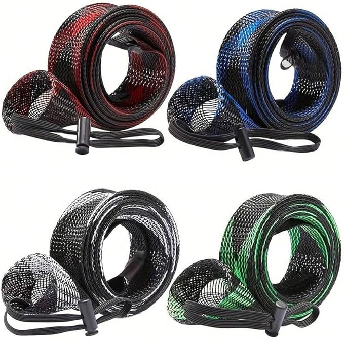 このロッドスリーブは、様々な長さの釣り竿に対応し、傷や損傷を防ぐために設計されています。耐久性の高いPET素材を使用し、車載時やボート上でのロッド保護に最適です。持ち運びが簡単で、釣り場への移動やロッド収納時にも便利です。湿気が溜まりにくいメッシュ仕様で、ロッドをしっかりと守ります。