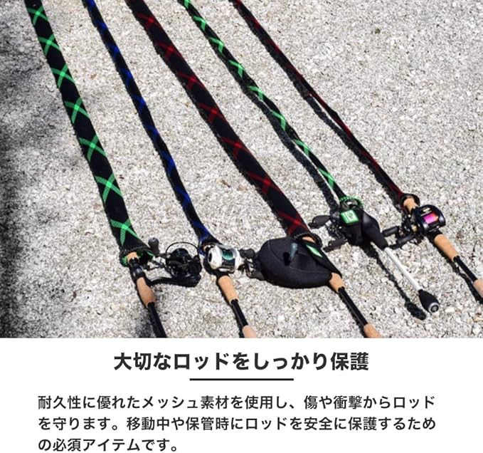 【大切なロッドをしっかり保護】 耐久性に優れたメッシュ素材を使用し、傷や衝撃からロッドを守ります。移動中や保管時にロッドを安全に保護するための必須アイテムです。