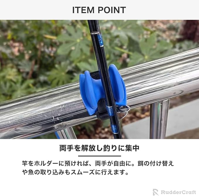 【両手を解放し釣りに集中】竿をホルダーに預ければ、両手が自由に。餌の付け替えや魚の取り込みもスムーズに行えます。