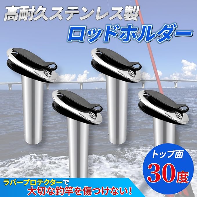 商品仕様 : 高耐久ステンレススチール製 埋め込み式 ロッドホルダー 排水溝付き 15度/30度/90度