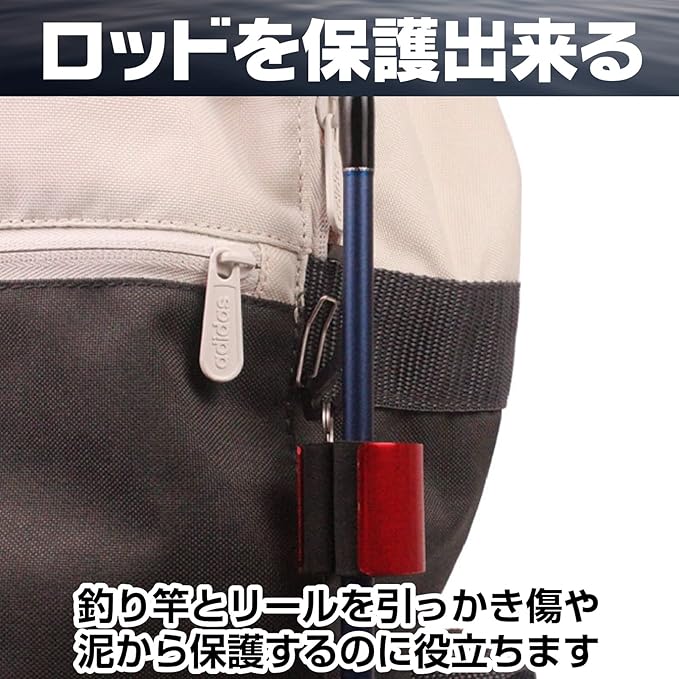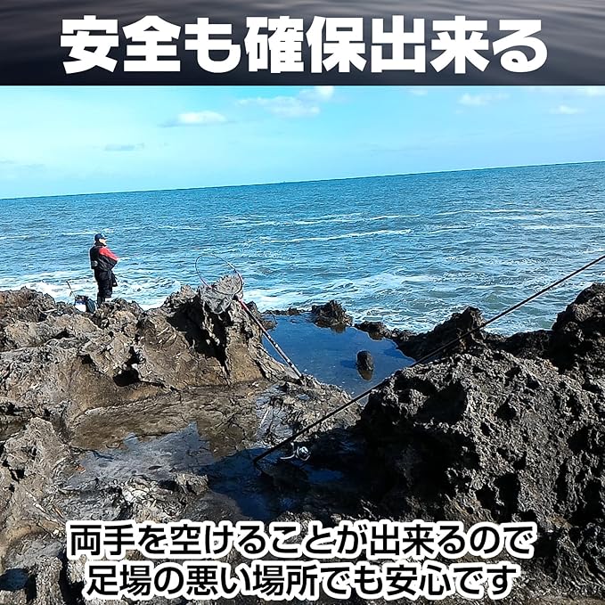 【特徴】ちょっと両手を空けたい時、 大切なタックルをその辺に置くのもちょっと・・・。 ホルダー部分にロッドを挟み、カラビナ部分をライフジャケットやゲームベスト、バッグ、ウェーダー などに取り付けると装備が一層自由になり、ストレスが解消されます。