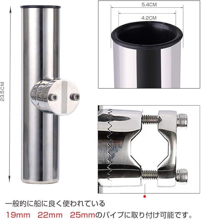 QISHUO ステンレス ロッドホルダー は船によく使われる19mm22mm25mmのパイプに取りつけ可能です。(注:パイプ太さ19mm以下の場合は、付属のボルトがグランプできません。別途短いボルトお買い求めください。ネジピッチはW1/4(特殊ピッチ)です。)パイプさえあれば、どこにでも設置可能。船ではなく、原付のパイプにも装着可能です。(ロッドホルダー 船)