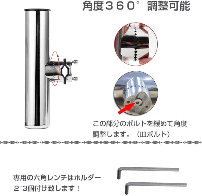 QISHUO ステンレス ロッドホルダー はインチ制ボトル使用なので、装着用のインチ制六角レンチが付き致します。2本セットはレンチ2本付き。4本セットはレンチ2~3本付き。(ロッドホルダー 船)