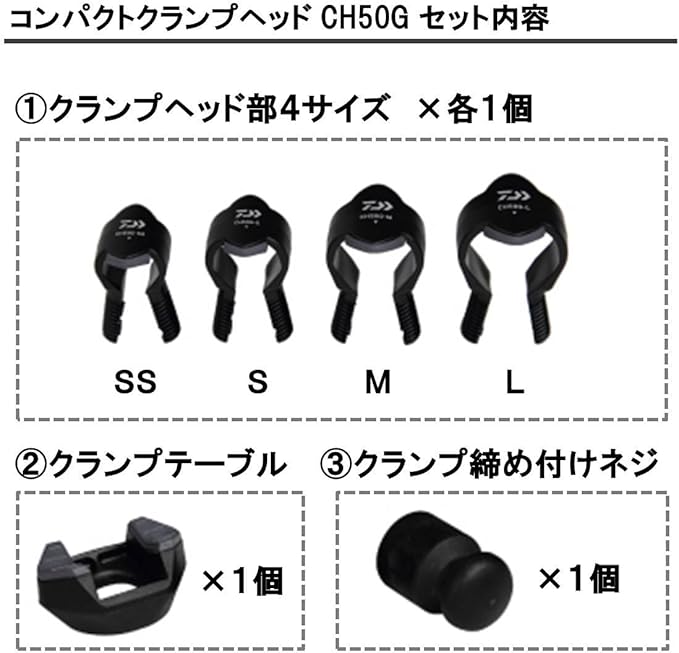 CH50GのL、M、S、SSサイズクランプヘッドを標準装備
