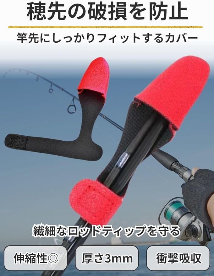 【ティップカバー:穂先の保護・破損防止に】繊細なロッドティップを保護するティップカバーは、ネオプレン素材で竿先にしっかりフィットします。電車移動や収納時にロッドティップがぶつかるのを防ぎ、破損リスクを軽減します。バスロッド、アジングロッド、エギングロッド、シーバスロッドなど、多様な釣竿に対応可能なサイズ設計で、日常的な使用にもストレスなく使えます。