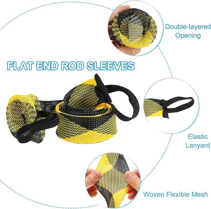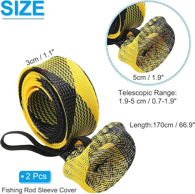 PATIKIL 67"ロッドソック 2個の釣りロッドスリーブカバー 編み目ポールプロテクターグローブ スピニングロッド フライロッド アイスロッド キャスティングロッド用 黒色イエロー | KAZESHOP