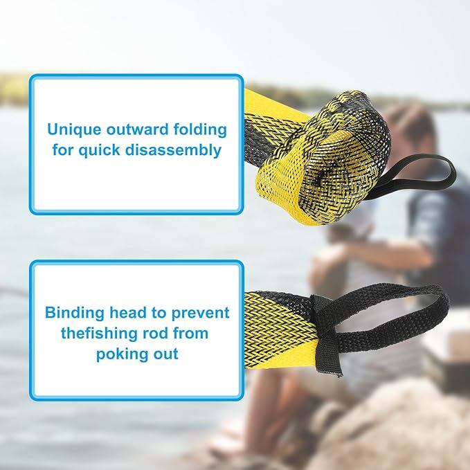 取扱説明:釣り竿をロッドスリーブで覆うことは、ロッドロッカーや車両での混乱を避け、釣り竿を傷やキズから保護する素晴らしい方法です。