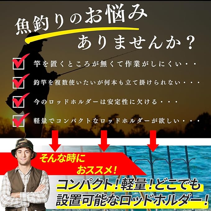 "【多数のロッドを一度に】スチールの腕の左右に2本ずつ、真ん中に1本ロッドを設置することができ、一度に5本物ロッドを置くことができます。