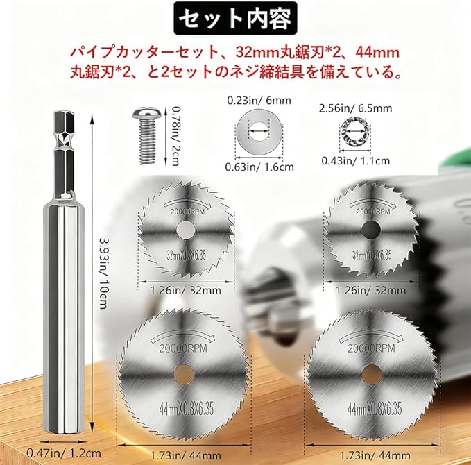 【Vitalux】HSS高速鋼 パイプ切断ブレード 六角シャンク対応 直径32mm 44mm 各2枚セット 金属 鉄管 木工 丸鋸刃 スリッターブレード パイプカッター 切削丸鋸 六角棒 鋸刃 DIY プロ用 | KAZESHOP
