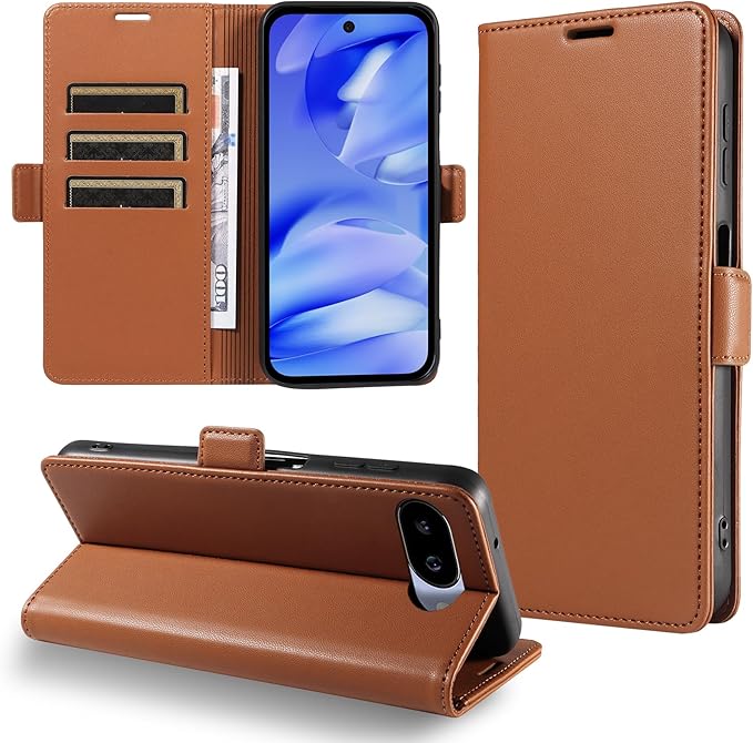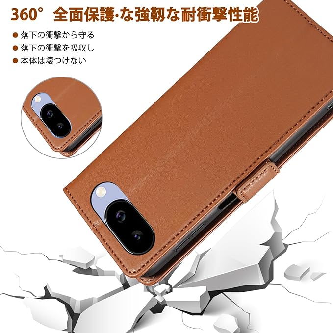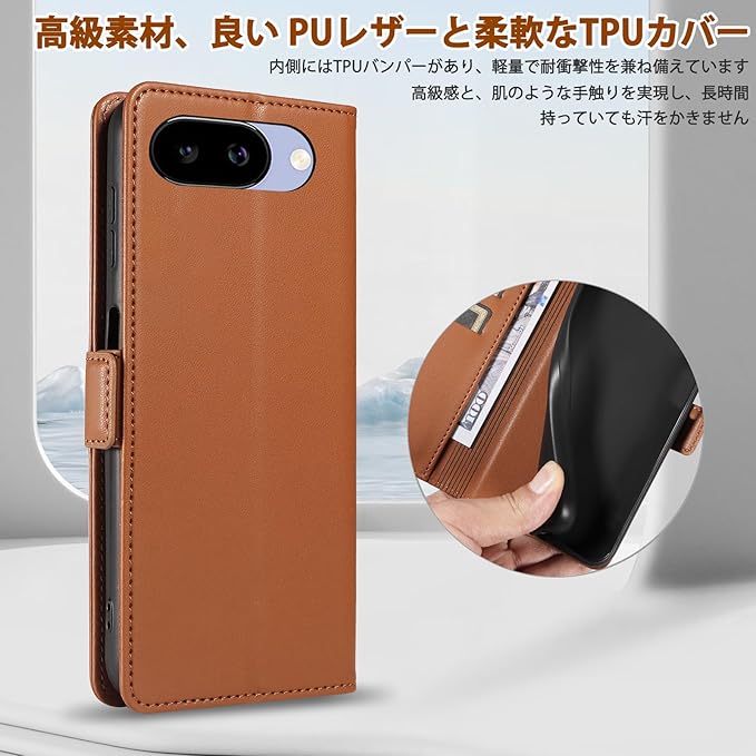 コンパチブル Google Pixel 9a ケース 手帳型 用 マグネットカバー 開閉式 財布型 カードポケット付き ケース 手帳 耐衝撃 スタンド機能 高級PUレザー 全面保護 グーグルピクセル9a Case 対応 - ブラウン | KAZESHOP